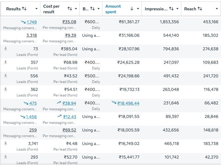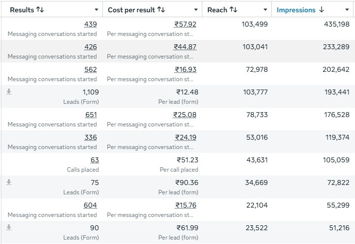 Performance data from campaigns focused on ROI, lead generation, and customer acquisition.